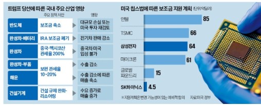 =보조금 폐기 땐 반도체·전기차 타격…'美 둥지' 가전·기계는 안도